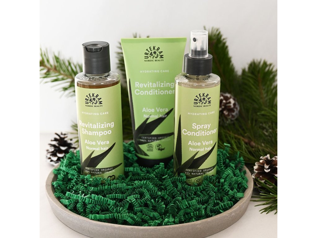 Dieses sorgfältig ausgewählte Set mit natürlicher Haarpflegekosmetik von Urtekram ist die ideale Wahl für die tägliche Pflege von normalem Haar. Es vereint sanfte Reinigung, Nährstoffversorgung und Regeneration dank des hohen Anteils an Bio-Aloe-Vera, die dabei hilft, das Haar hydratisiert, glänzend und angenehm weich zu halten. Die Produkte sind für Frauen und Männer geeignet, die eine schonende Pflege ohne unnötige Chemie bevorzugen.