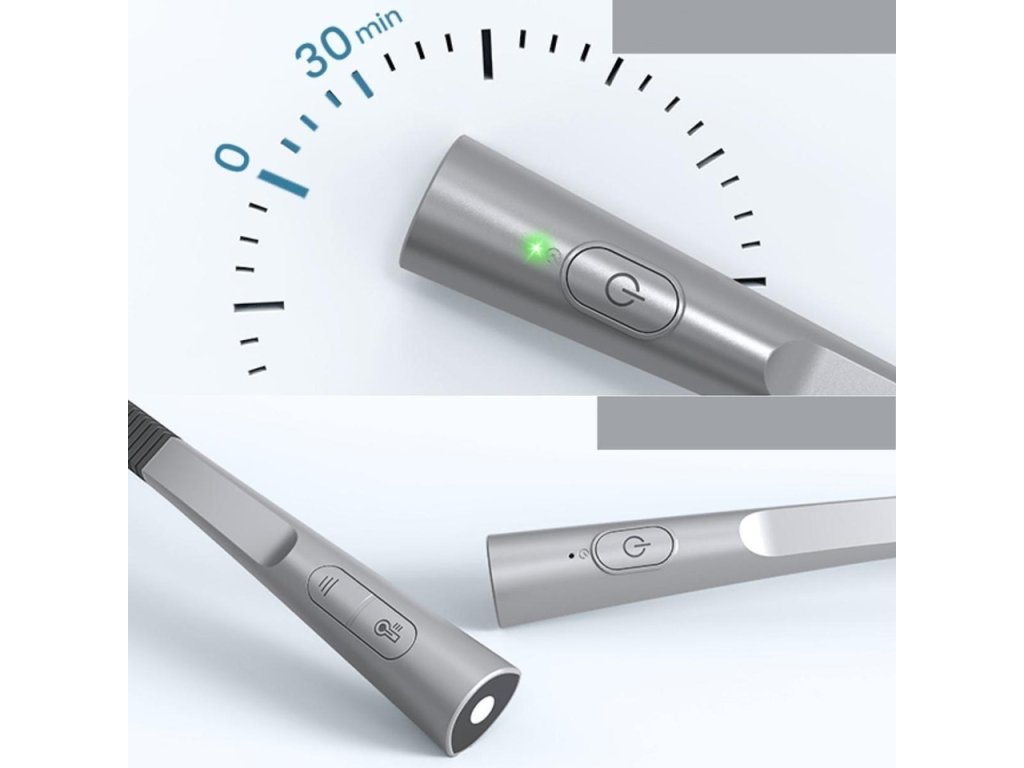 Diese Lampe wurde auf Basis von Kundenfeedback entwickelt – und das merkt man in jedem Detail. Ein- und Ausschalten erfolgt mit nur einem Tastendruck – kein umständliches Wechseln zwischen Modi. Durch langes Drücken aktivieren Sie den 30-minütigen automatischen Abschalttimer, was besonders beim abendlichen Lesen im Bett praktisch ist, wenn man früher einschläft, als man die Lampe ausschaltet. Praktisch sind auch die drei LED-Anzeigen auf der Oberseite, die jederzeit über den aktuellen Batteriestatus informieren.