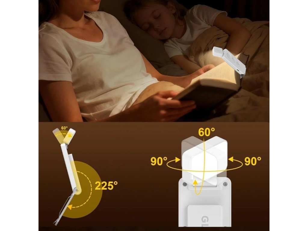 Der Abstrahlwinkel von 110° minimiert das Austreten von Licht in die Umgebung, die leisen Tasten stören keine Mitleser oder Schlafenden und der verstellbare Lampenkopf (90° seitlich, 60° nach unten) ermöglicht eine präzise Ausrichtung des Lichts. Die robuste Konstruktion aus langlebigem ABS-Kunststoff und die leichtgängigen Gelenke sorgen für eine lange Lebensdauer, während der Clip sicher an Büchern unterschiedlicher Stärke hält, ohne die Seiten zu beschädigen. Mit einem Gewicht von nur 1,8 oz (ca. 50 g) und dem ultraflachen Design ist die Lampe auch ideal für Reisen. Im Lieferumfang enthalten sind die Lampe, ein USB-C-Kabel, eine Bedienungsanleitung und ein Lesezeichen.