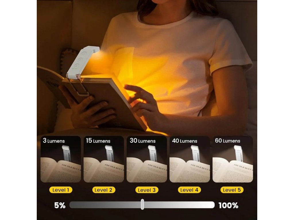 Lesezeichen Leselampe 3 Beleuchtungsmodi, einstellbare Intensität oranges Licht für besseren Schlaf lange Akkulaufzeit