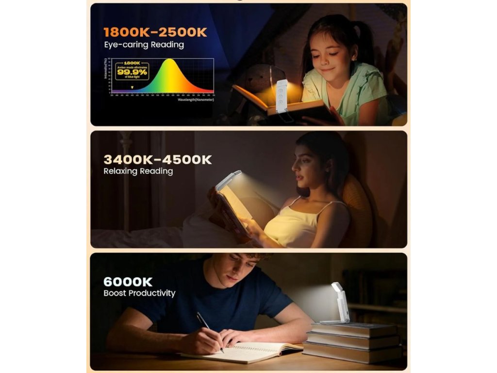 Diese Clip-Leselampe wurde für alle entwickelt, die abends oder nachts lesen möchten, ohne die Augen zu belasten oder ihre Umgebung zu stören. Dank des um 150 % größeren Lampenkopfs und 12 moderner LEDs bietet sie ein deutlich breiteres und gleichmäßigeres Licht – keine harten Reflexionen, keine dunklen Stellen, kein Flackern. Die hohe Farbwiedergabe CRI ≥ 90 sorgt dafür, dass Text und Illustrationen natürlich wirken und das Lesen auch über längere Zeit angenehm bleibt.