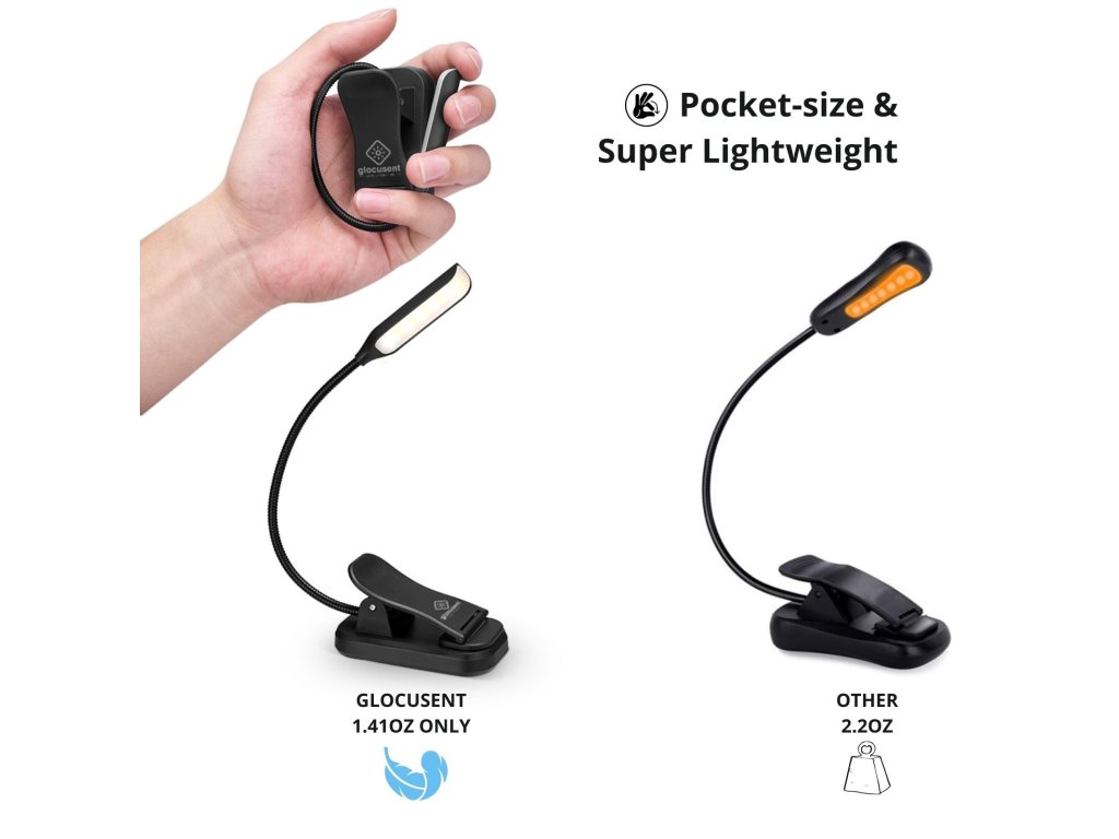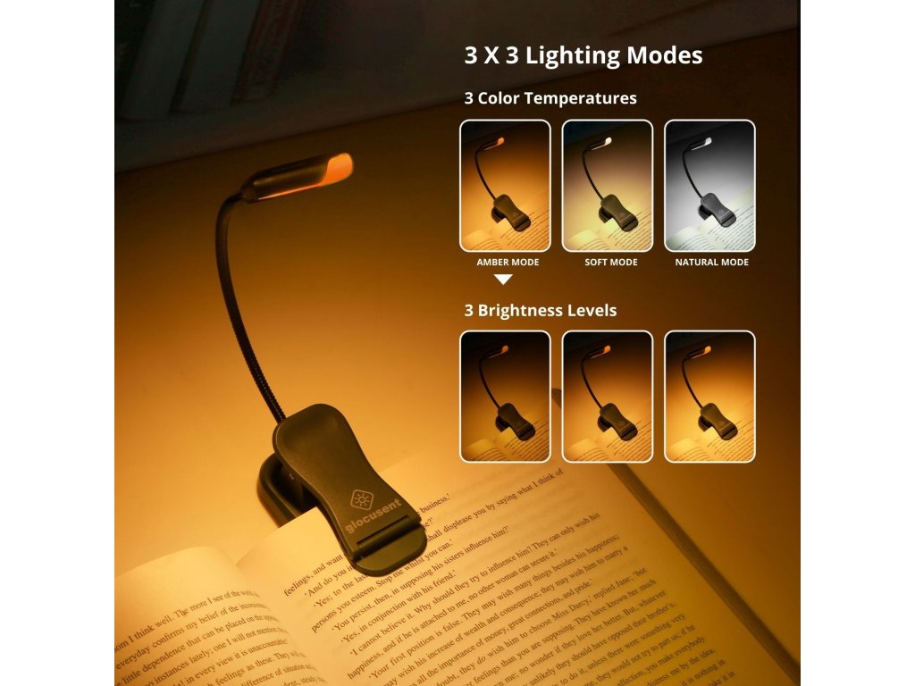 Die Glocusent Clip-Lampe wurde entwickelt, um angenehmes und blendfreies Licht für das abendliche Lesen zu bieten. Ihre kompakte Form, flackerfreier, geräuschloser Betrieb und die Möglichkeit, sie an einem Buch oder Tisch zu befestigen, machen sie zum perfekten Begleiter im Bett und auf Reisen.