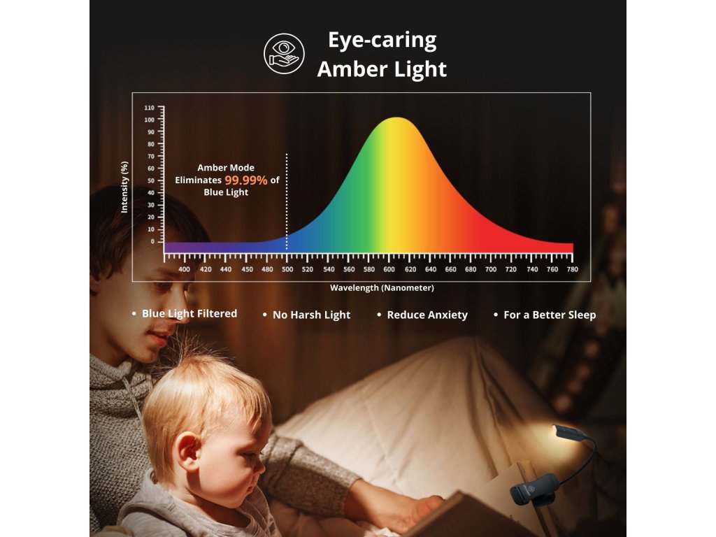 Lesezeichen Leselampe 3 Beleuchtungsmodi, einstellbare Intensität oranges Licht für besseren Schlaf lange Akkulaufzeit