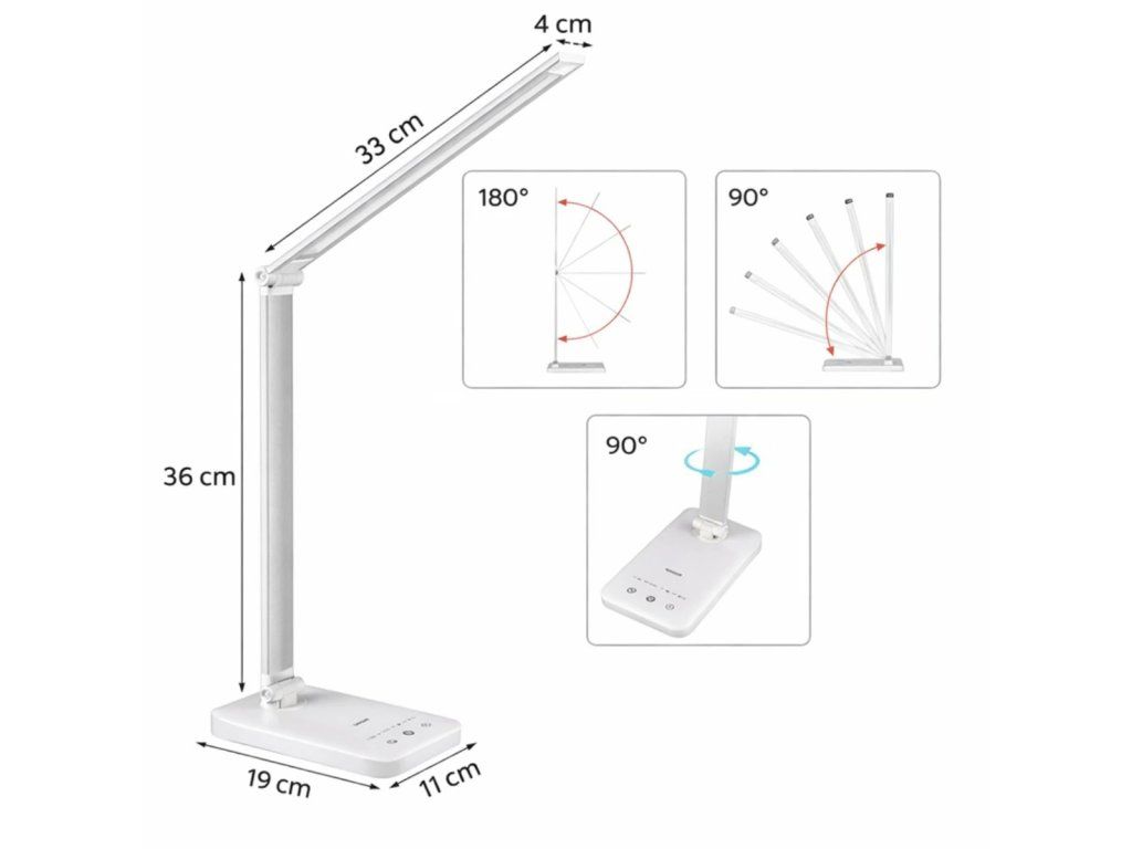 Die Lampe ist für Arbeit, Lernen und Lesen am Schreibtisch konzipiert, wobei Sie schnell zwischen weißem, natürlichem und warmem Licht wechseln können. Den flexiblen Hals stellen Sie in verschiedene Winkel und Richtungen ein, sodass Tastatur, Heft und Arbeitsfläche gezielt beleuchtet werden, ohne unnötig in die Umgebung zu strahlen. Für den Abendmodus stehen außerdem orange und rote Töne zur Verfügung, die helfen, eine ruhigere Atmosphäre zu schaffen. Dank CRI >85 wirkt das Licht natürlich und Farben auf Papier sowie Gegenstände auf dem Tisch sehen realistisch aus. Die Bedienung erfolgt über ein Touchpanel, über das Sie Helligkeit und Lichtfarbe mit einer fließenden Bewegung einstellen.