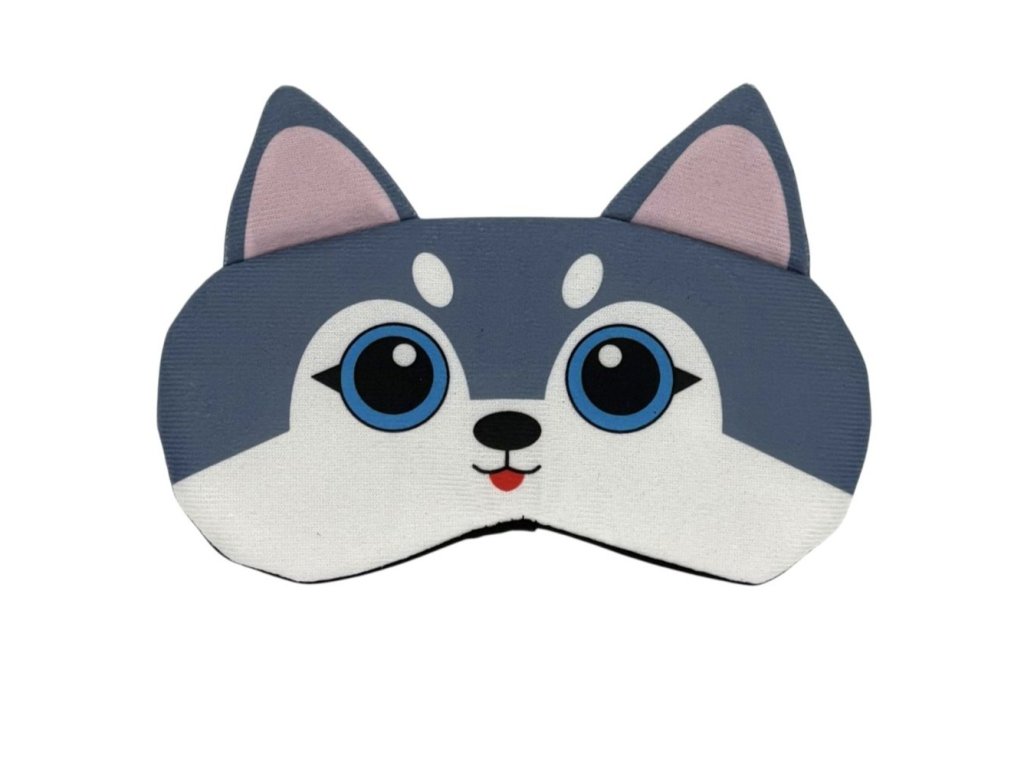 Schlafmaske mit blauem Wolfsjungen-Motiv. Bequem, angenehm auf der Haut und schützt die Augen vor Licht. Auch als Spielzeug für Kinder geeignet.
