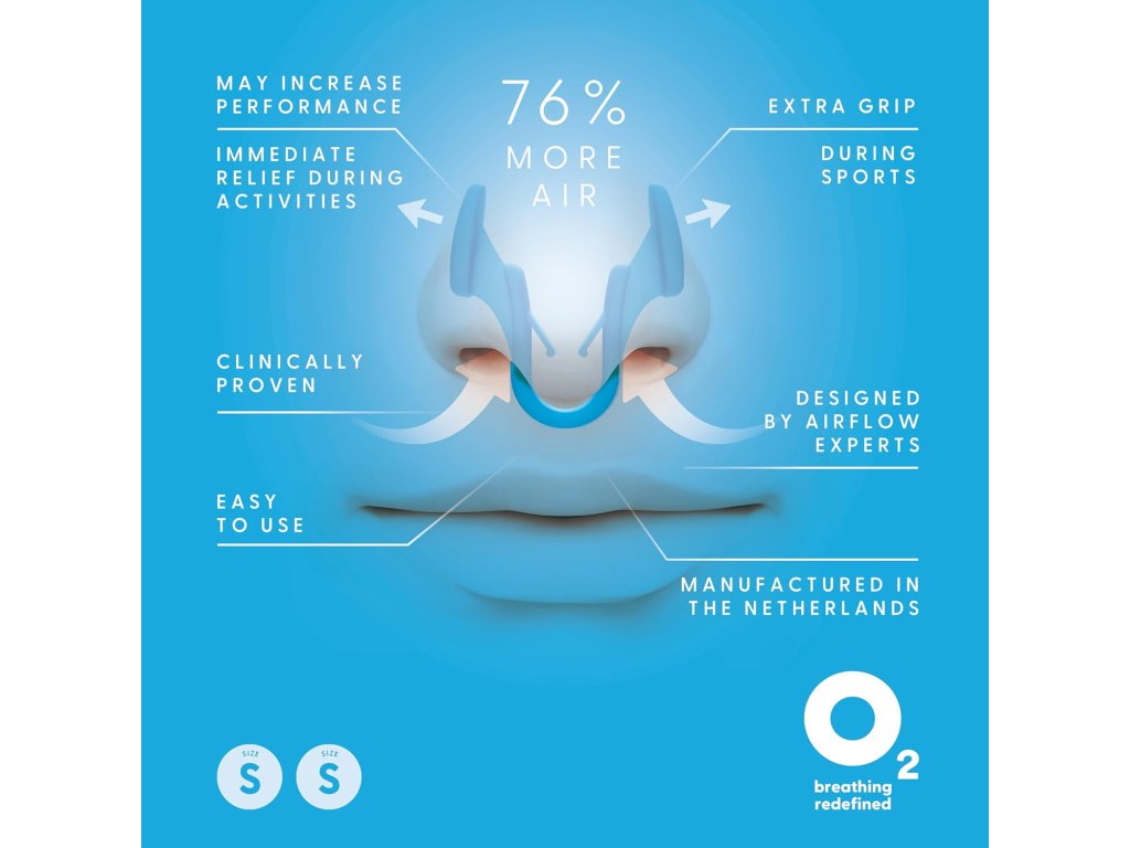 Airmax Sport ist ein spezieller Nasendilatator, der sanft den engeren Teil der Nasengänge erweitert. Dadurch wird der Luftstrom durch die Nase deutlich verbessert und das Atmen erleichtert. Laut unabhängigen Studien kann Airmax die Luftdurchlässigkeit um bis zu 76 % erhöhen, was bedeutet, dass mehr Sauerstoff in die Lungen gelangt. Dies bringt erhebliche Vorteile nicht nur für Sportler, sondern auch für normale Nutzer, die beim Bewegen besser atmen möchten. Im Vergleich zur klassischen Version Airmax Classic verfügt der Sport-Dilatator über spezielle Halterungen, die ein Herausfallen aus der Nase auch bei Aktivitäten verhindern.