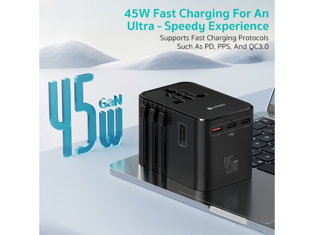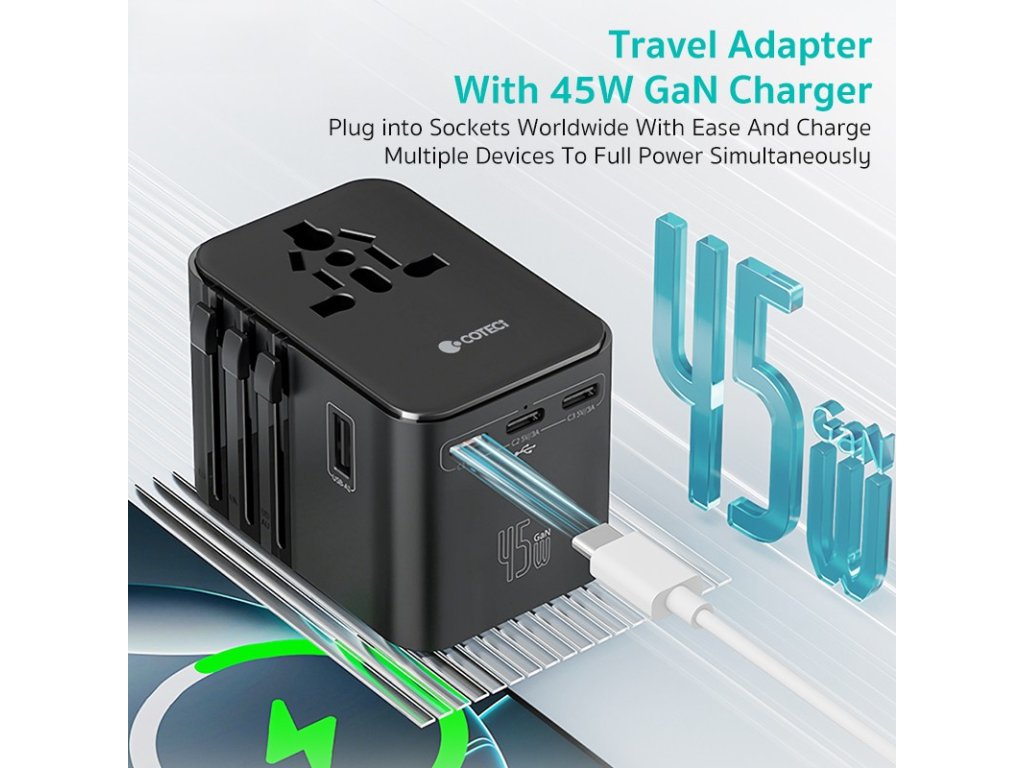 Reisen Sie sorgenfrei mit dem universellen Coteci 45W Adapter