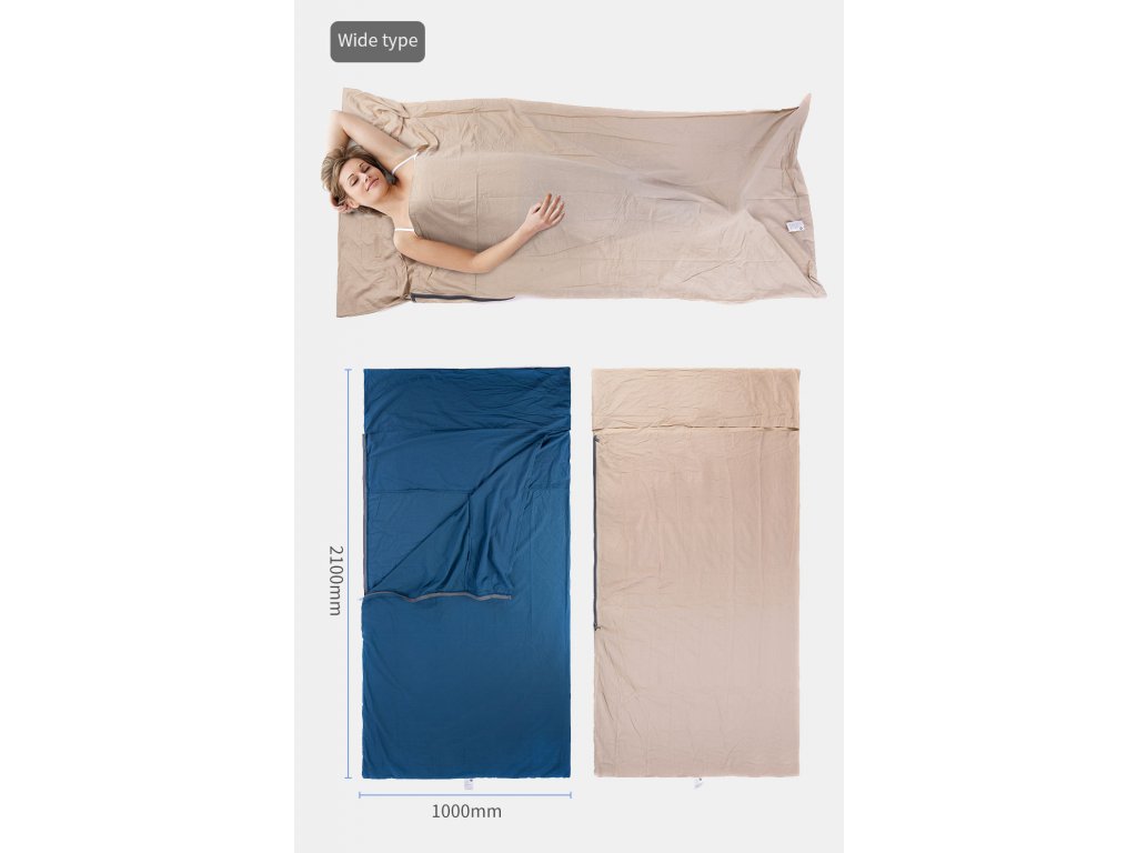 Die ultraleichte, faltbare Baumwollschlafsackeinlage Naturehike ist die ideale Wahl für alle Reisenden, die die Lebensdauer ihrer Reiseausrüstung verlängern möchten. Der Liner dient als Hygienedecke, die man in den Schlafsack legt, um den Schlafsack sauber zu halten. Nach dem Gebrauch können Sie die Einlage einfach abnehmen und waschen. Da der Liner aus 100 % Baumwolle besteht, ist seine Pflege so einfach wie möglich und sein Material erinnert an ein Laken von zu Hause. Die einzigartige Hülle, in die der Einsatz gefaltet werden kann, ist atmungsaktiv und fasst nicht mehr als eine Dose Ihres Lieblingsgetränks. In heißen Sommernächten kann der Liner auch als Ersatz für einen Schlafsack verwendet werden. Außerdem verbessert das Innenfutter die Isolationseigenschaften des Schlafsacks, so dass er auch mit kälteren Temperaturen als empfohlen zurechtkommt.